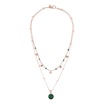 Bronzallure Alba necklace made of bronze (rose gold-plated) and 1 malachite