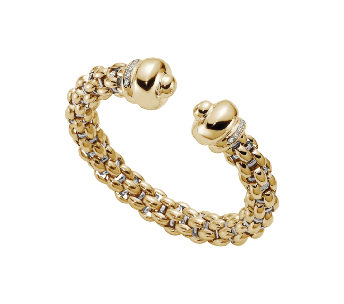 The Fope Icone bracelet in 750 yellow gold and 750 white gold was specially developed for discerning customers who value quality and luxury. With a total carat weight of 0.48 carats of diamonds, it adds a radiant sparkle to any wrist. The polished finish of the bracelet and the main surface of the materials creates an elegant and tasteful look.