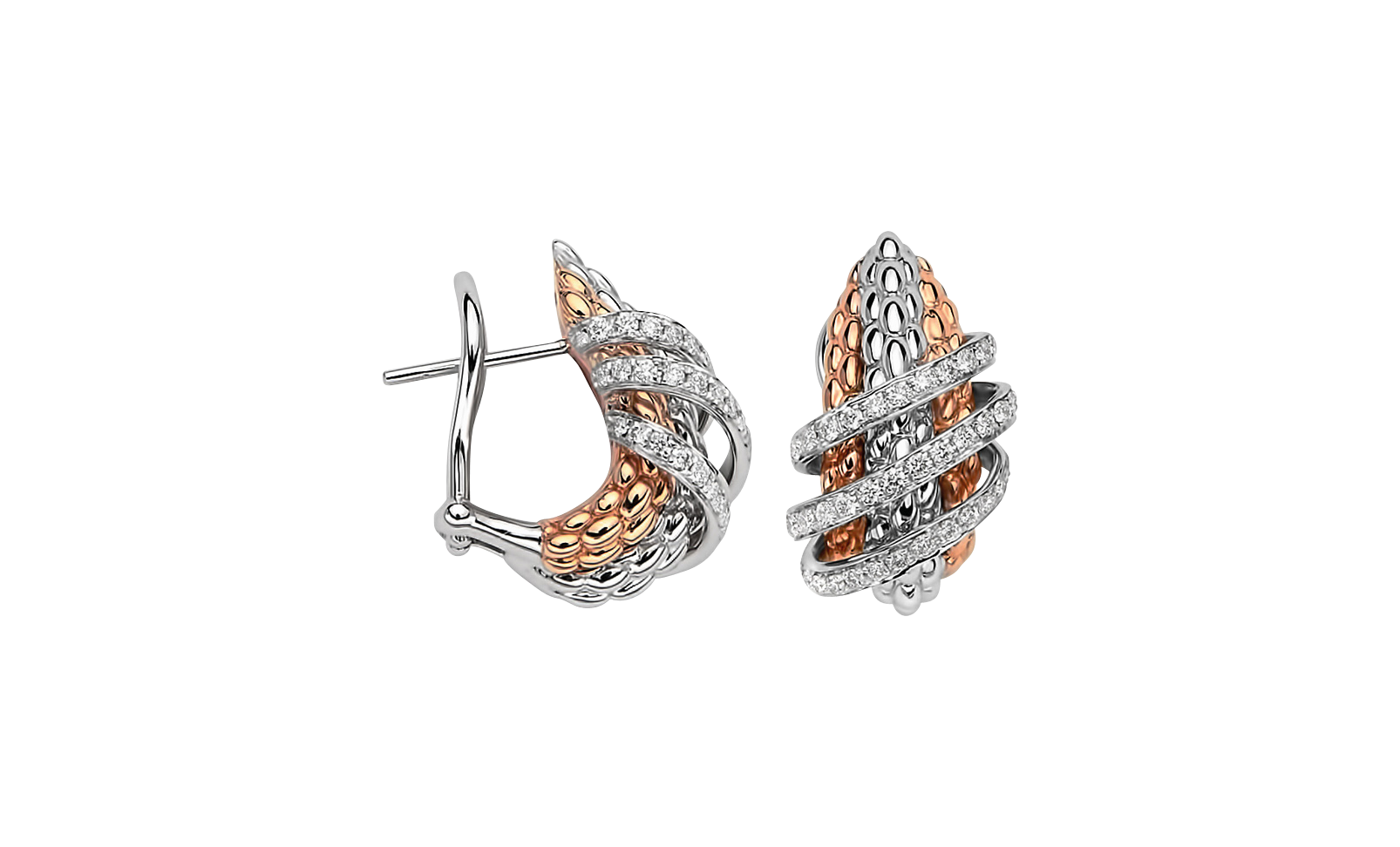 in 750 rose gold and white gold with several brilliant-cut diamonds (2 x 0.41 carats)