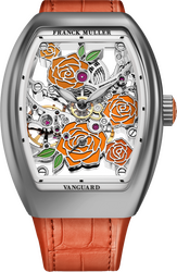 Franck Muller Vanguard Rose Skeleton 42.3 x 32mm Ladies watch with multicolor dial and alligator leather strap