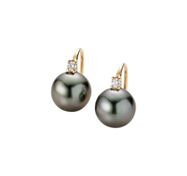 Gellner H2O Earrings in 750 yellow gold with 2 Tahitian pearls and 2 brilliant-cut diamonds (2x 0.09 carat)