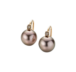 Gellner H2O Earrings in 750 yellow gold with 2 Tahitian pearls and 2 brilliant-cut diamonds (2x 0.09 carat)