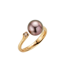 Gellner H2O Ring in 750 yellow gold with Tahitian pearl and 1 brilliant cut diamond (0,18 carat)