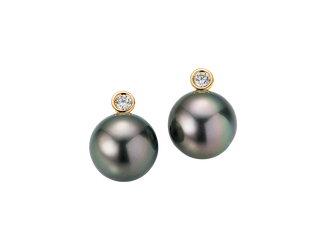Gellner H2O stud earrings in 750 yellow gold with 2 Tahitian pearls and 2 brilliant-cut diamonds (2x 0.09 carat)