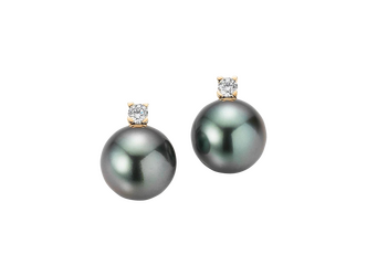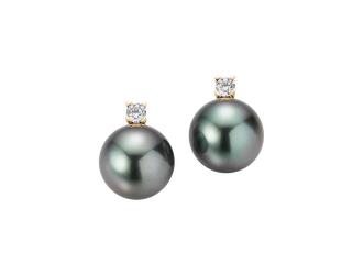 Gellner H2O stud earrings in 750 yellow gold with 2 Tahitian pearls and 2 brilliant-cut diamonds (2x 0.09 carat)