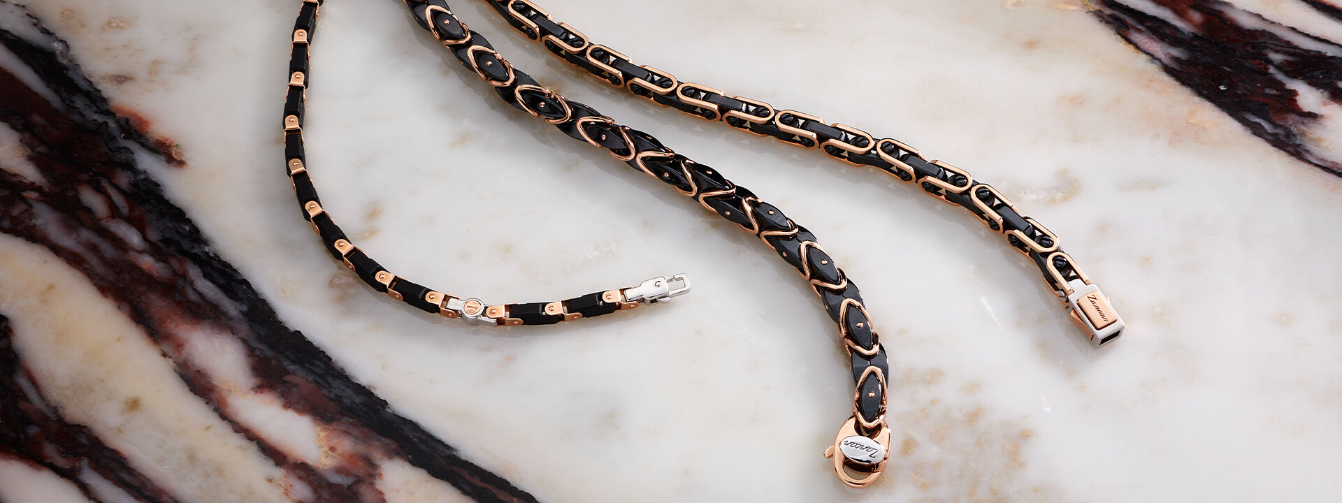 Every piece of Zancan jewelry is more than just an accessory; it is an expression of the personality and individuality of its wearer. The use of innovative materials such as ceramic and Kevlar in combination with traditional precious metals and gemstones gives rise to unique creations. Whether rings, bracelets, necklaces or watches - Zancan enables men to tell their own story and emphasize their style.